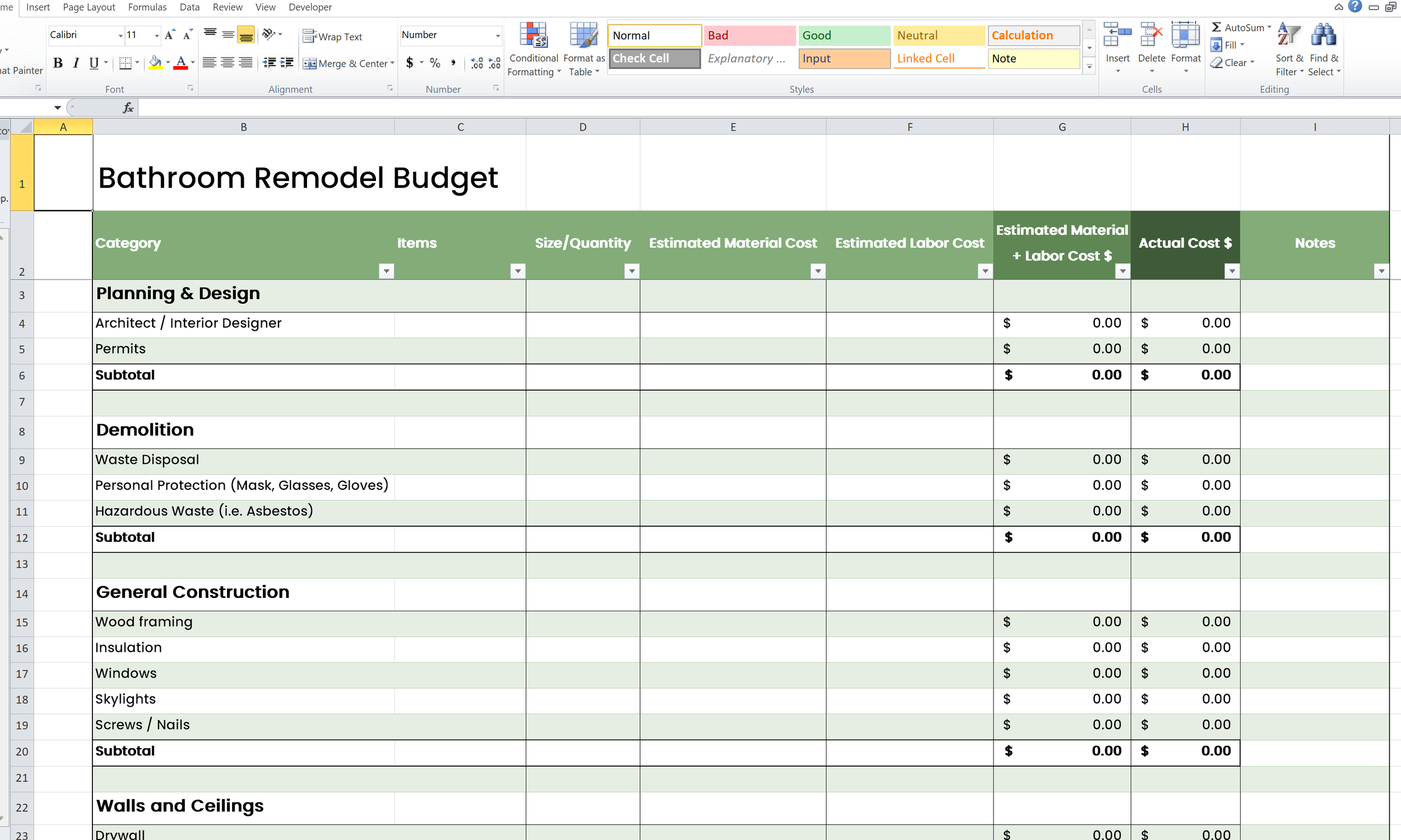 Bathroom Remodel Budget Template
